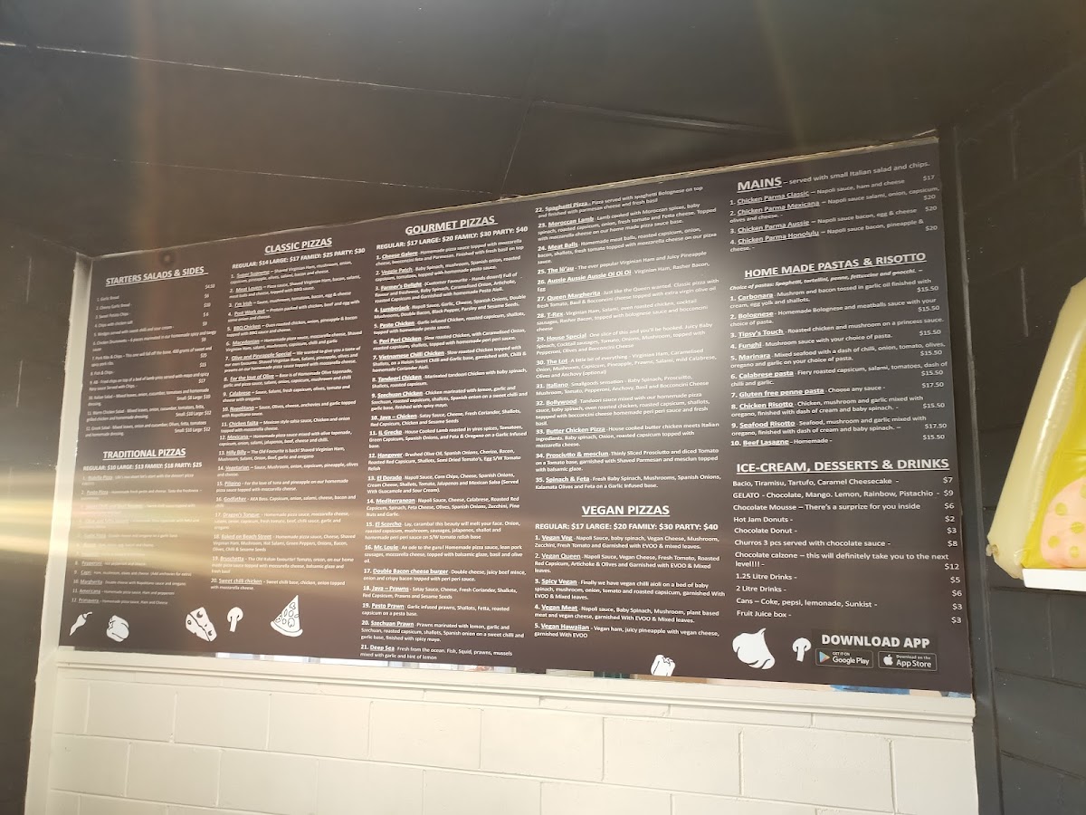 For those seeking something more substantial, the Mains offer a variety of hearty dishes, including BBQ Pork Ribs, Beef Lasagne, Mexican Parma, and the ever-popular Classic Schnitzel. If you're craving a unique twist, their Starters section delivers with options like Mac N Cheese, Peri-Peri Chicken Wings (4 pieces), and Loaded Fries, to name a few. For a Mediterranean touch, try the Bruschetta Mediterranean or indulge in Cheesy Garlic Bread.